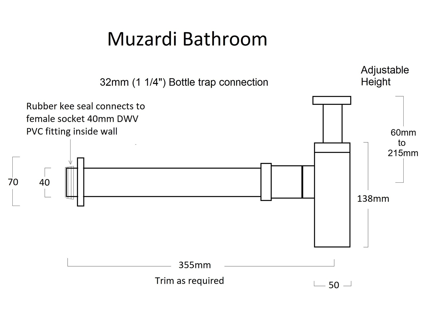 Waste connects to a female socket 40mm DWV pvc fitting