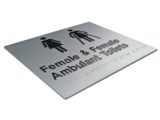 This sign is used on the outside of a toilet to indicate there is a FEMALE TOILET and a FEMALE AMBULANT TOILET inside