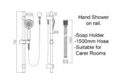 Chrome Hand Held Shower on Rail suitable for carers rooms