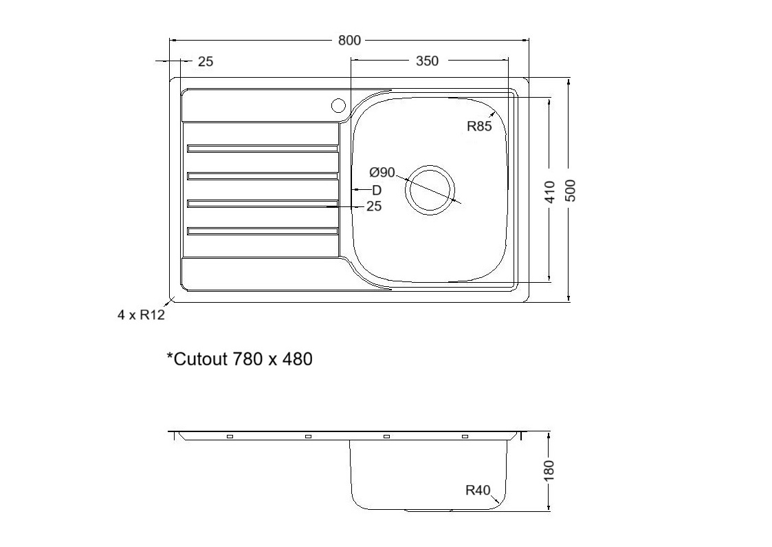 Single bowl sink. RIGHT hand bowl