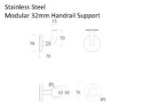 Modular Grab Bar Handrail Support Screw On 32mm 304 Stainless Steel